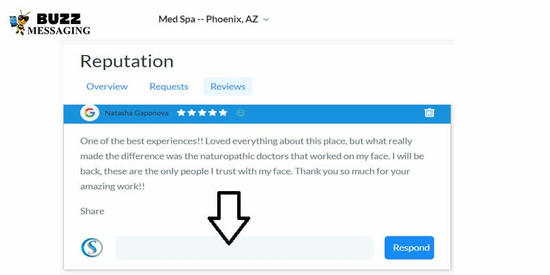 Above is an example from a Med Spa. The grayed area is where they will type in their response and it will post right to their Google My Business (GMB) page.